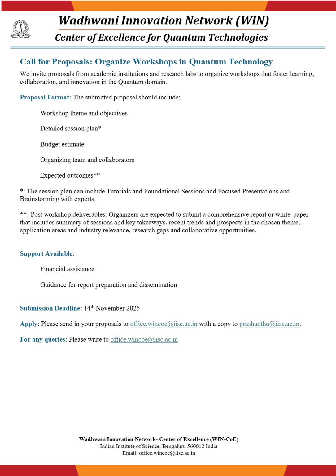 Apply: Please send in your proposals to office.wincoe@iisc.ac.in Submitted proposals will be considered for further processing periodically.